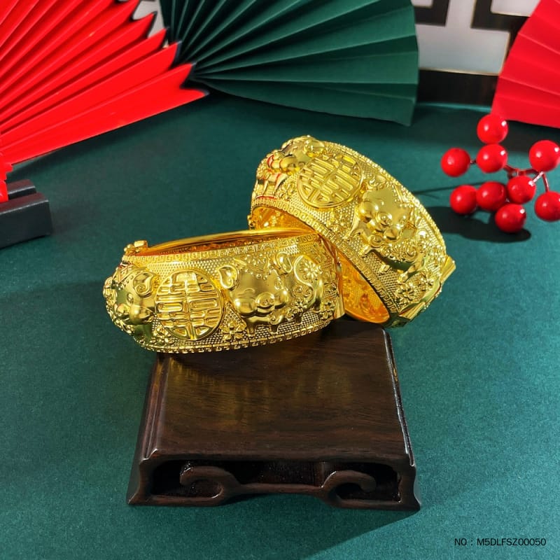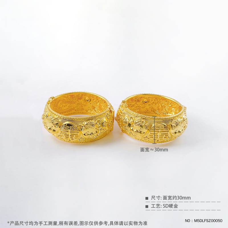 足金 #婚庆 无氰5D龙凤手镯双喜猪猪家华婚嫁龙凤手镯开口龙凤镯/对
