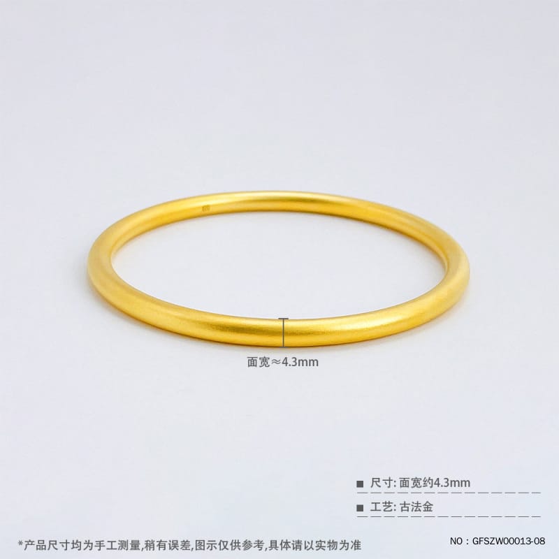足金999.9 【磨砂实心】古法传承面宽约4.2-4.4mm古法素圈古法光圈固口古法手镯